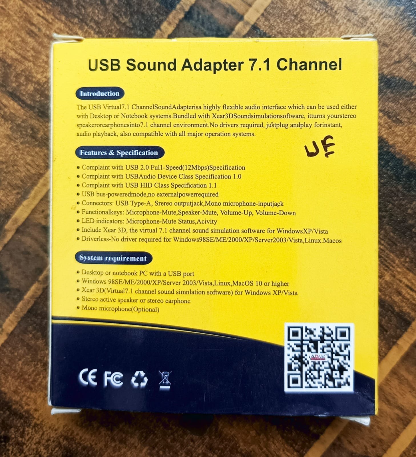 Desktop or notebook PC with a USB port Windows 98SE/ME/2000/XP/Server 2003/Vista, Linux, MacOS 10 or higher Xear 3D(Virtual7.1 channel sound simnlation software) for Windows XP/Vista Stereo active speaker or stereo earphone Mono microphone(Optional)